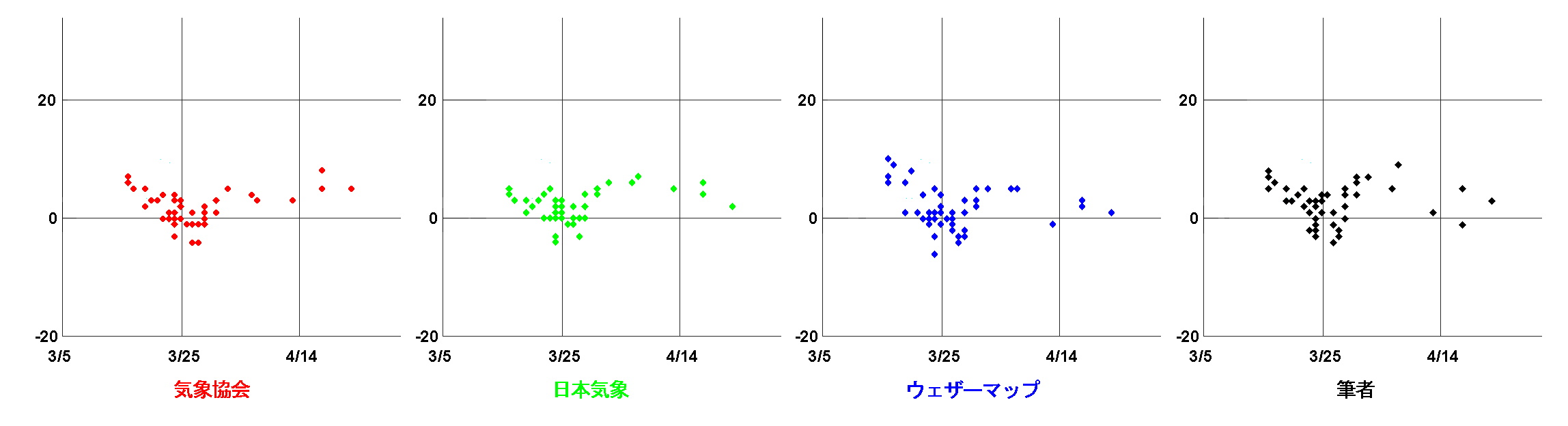 「日本気象」については、前年の12月に開花を予想しているが、図では略されている。